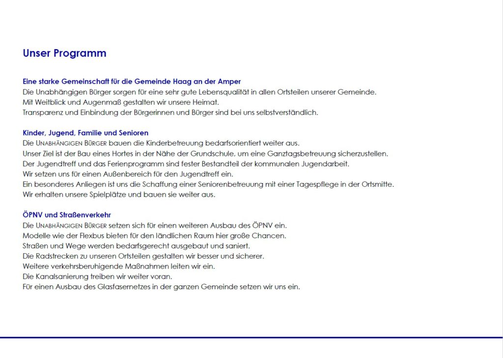 Wir sind eine parteiunabhängige Gruppierung, die sich für die Belange unserer Heimat einsetzt und die seit 24 Jahren die Gemeinde erfolgreich führt.