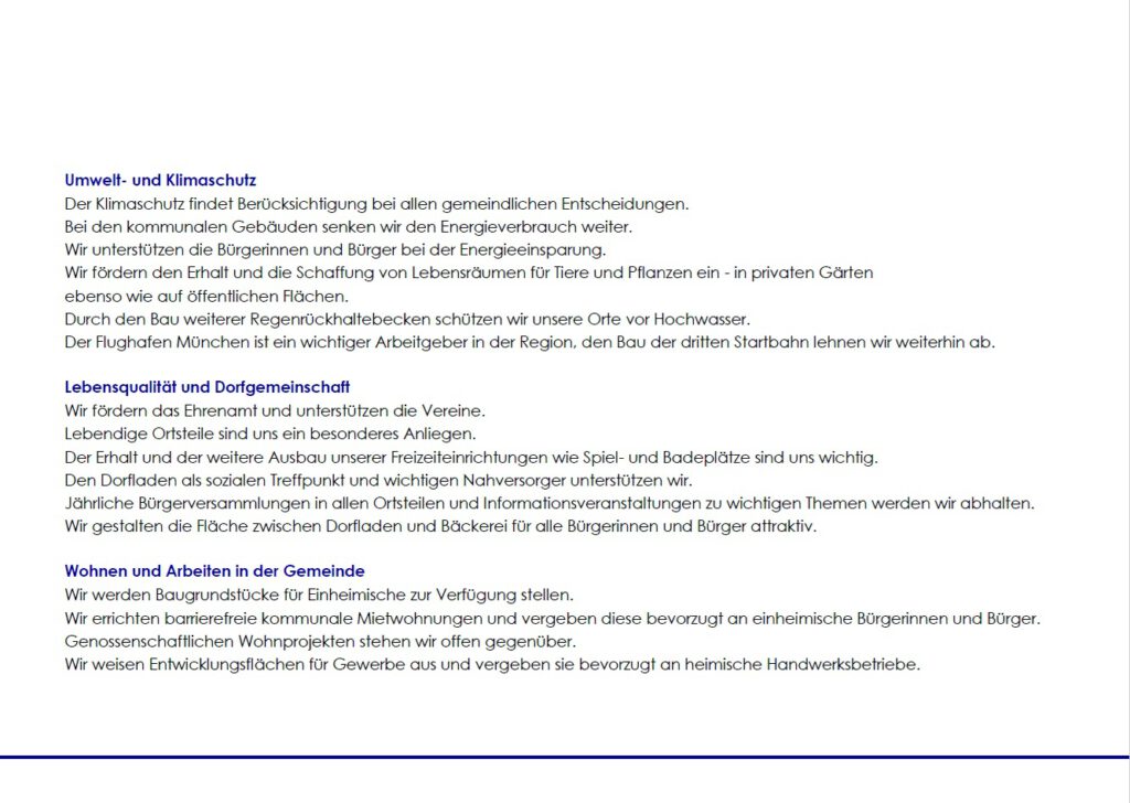 Wir stehen für eine zukunftsorientierte, heimatverbundene dörfliche Weiterentwicklung.