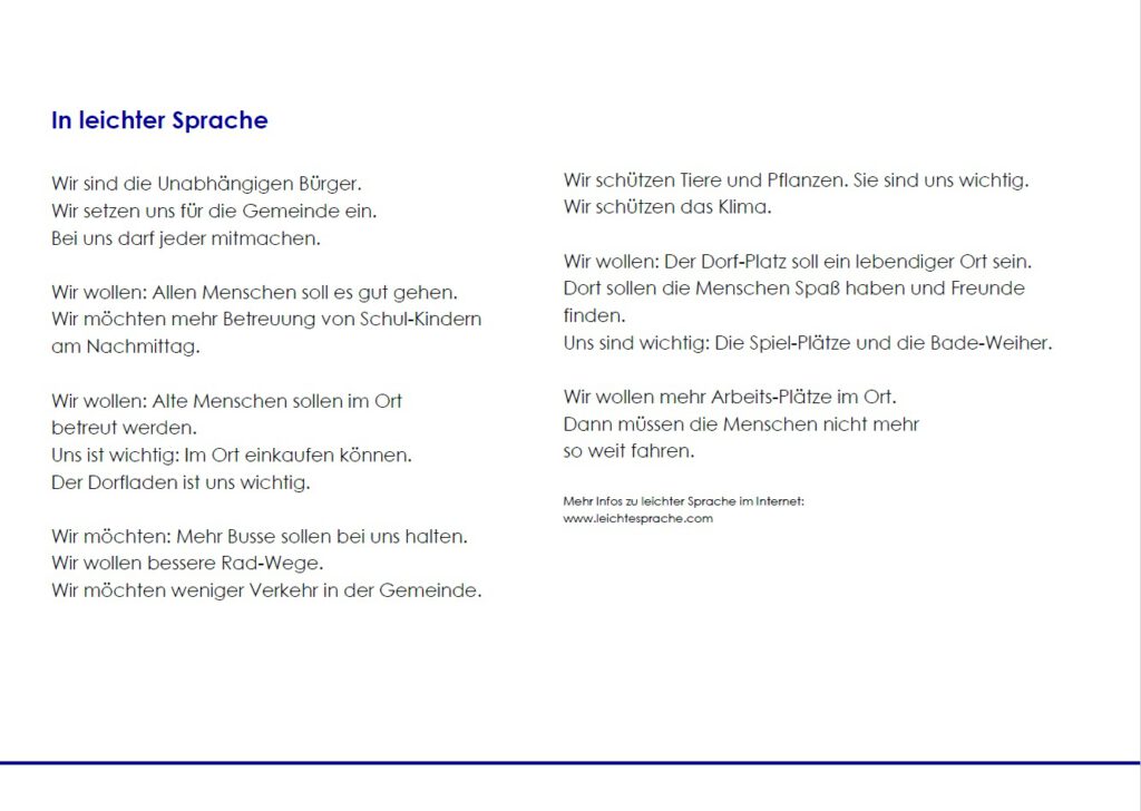 Wir stehen für eine offene, transparente und unabhängige Gemeindepolitik.